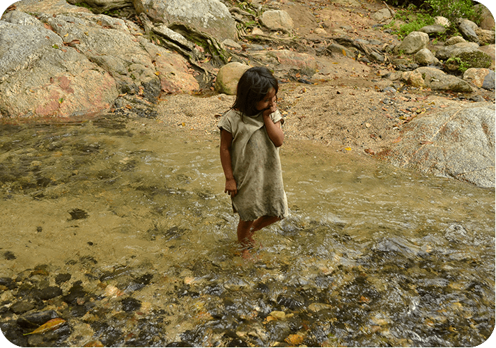 We support sustainable access to clean water through ancestral technologies, including a spring recovery pool built with river stones.
